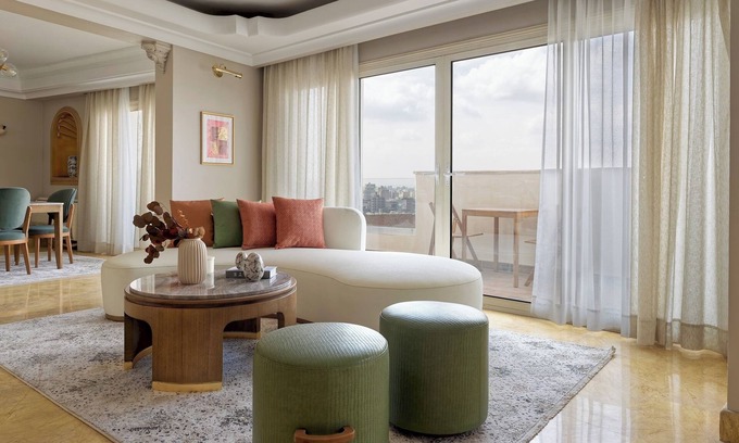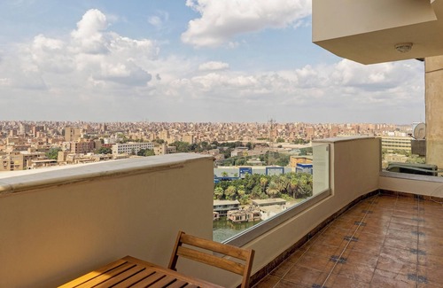 Panoramic Duplex Apartment in Zamalek, Cairo. A very fresh theme in the heart The Nile overlooking Nile River. Guests enjoy our hotel services of housekeeping every 2 days, room service, Netflix and free Wi-Fi.