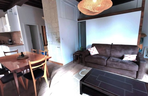 Beautiful Apartment, Perfectly Located Steps from the Dordogne, on a Lively Square in Historic Bergerac. Surrounded by vibrant restaurants and bars, this stylish and comfortable space was fully renovated this year. It's ideal for a family or two couples, with two double beds for a restful stay. Free parking is just a 3-minute walk away.