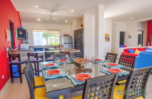 Welcome to your dream wedding accommodation at the Vibrant and colorful ocean side villa with pool, AC and much more!, also known as Casa de Colores. This stunning property is bursting with life and color, providing a romantic backdrop for your special day. Nestled on the north end of Half Moon in beautiful Akumal, this villa offers an unforgettable experience for couples looking to tie the knot surrounded by natural beauty and vibrant aesthetics.