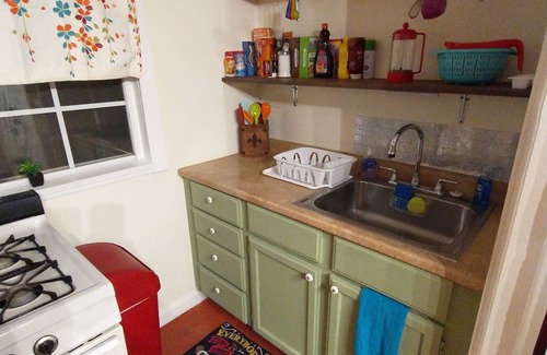 Live like a local in the charming cottage behind our 1930's shotgun home, where a lush tropical courtyard greets you just off St. Claude. The Marigny is across the street, short stroll to the French Quarter (uber in 5). You'll enjoy the spacious, private guest house w/ keyless entrance, 2 separate king bedrooms, full bath, full kitchen w/ laundry and living/dining area. Our home captures the vibrancy of NOLA with a fun, eclectic style. Plenty of street parking, just 1 block to St. Roch Market!