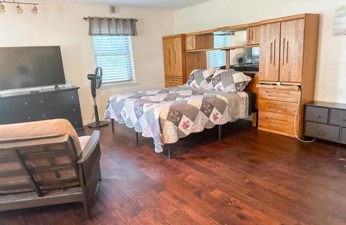 Vibrant Work Stay Studio Cowboy Pool, Pet ok near Tx Motor Speedway by Vacation Your Way offers accommodations in Fort Worth, 8.7 miles from Texas Motor Speedway and 15 miles from Fort Worth Convention Center. This property offers a private pool and free private parking. Dickies Arena is 18 miles away and AT&T Stadium is 27 miles from the vacation home. With free Wifi, this vacation home offers a TV, and a fully equipped kitchen with a microwave and toaster. For added privacy, the accommodation features a private entrance. Globe Life Park in Arlington is 28 miles from the vacation home, while Six Flags Over Texas is 29 miles away.