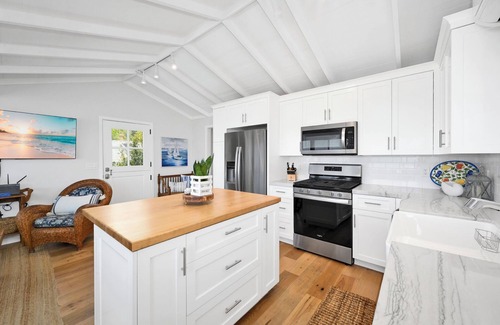 This 1 Bedroom 1 Bath home is a 5-minute walk to Victoria Beach with beautiful Sunset Views. This home includes 1 Queen Bed, Fully Equipped Kitchen, Walk-in Shower with Bench Seat, Smart TV, WiFi, Washer & Dryer, Linens, Garage Parking, Beach/Bath Towels, Beach Chairs and More.