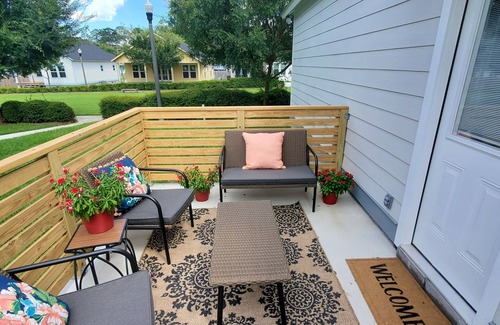 New Construction in Downtown Thomasville. This home is located in Victoria Park, one of Thomasville's newest locations. Take a stroll to the Ampitheater for concerts on First Friday's, dine at our fabulous restaurants and shop till you drop on the bricks. Museums, coffee shops and golfing are nearby. This home is has a well-stocked kitchen and comfortable for your party of six. After a day of exploring, enjoy a quiet evening on one of the porches.