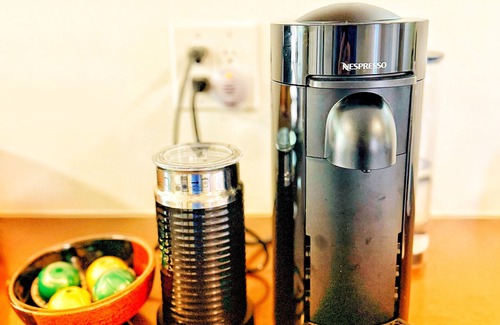 The full kitchen has everything you need, including a Nespresso coffee bar! Sit and eat in the formal dining room, or head outside and enjoy eating in the garden, in any of the 3 seating areas. The garden area is also a great place to sit and have your coffee, or to finish the day with a glass of wine.