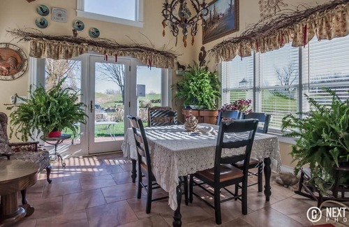 This 1900's Victorian farm house has been completely renovated and updated, while keeping with the original character of the dwelling. This great country get-a-way is a unique experience for those animal lovers who would like to experience farm life without having to do all of the work. Come relax and enjoy this country home with large covered porches, lush green lawns, a gazebo that overlooks the acres of beautiful rolling land, ponds to fish in, a river to canoe or kayak in and many paths to explore. Come stay for a couple of days or a week and plan on a great adventure on a private farm. Guests are welcome to interact with the many animals on site or just sit on one of the lovely porches and enjoy the peacefulness that farm life provides. The well appointed kitchen, bedrooms and sitting areas make a great place to entertain. You can fix a gourmet dinner and eat in one of the lovely dining rooms or barbecue on the patio. A short trip to town gives you many great restaurants to dine at. For those who just want a quiet week end to hang out with a group of friends and have a bonfire, this is the place for you. We also cater to those everyday travelers who need more space for their traveling companions and want to feel at home away from home for a couple of days. Surrounded by rolling pastures with horses, goats, geese, peacocks, and other farm animals Flint River frontage, for some back water rafting, there are many things to do. PLEASE NOTE: OWNER RETAINS THE RIGHT OF ENTRY TO THE BASEMENT AND KITCHEN AREA FOR MEANS OF MAINTAINTING AND UPKEEP OF MECHANICALS INCLUDING WIFI, ELECTRICAL, SUMP PUMP, ETC. TO HOME.