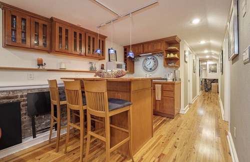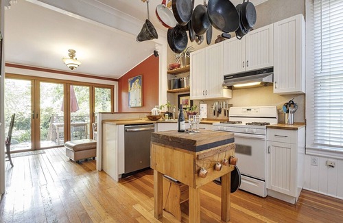 This immaculate property boasts modern amenities alongside its historic allure. Enjoy cozy heated wood floors, a gas fireplace, and a big open kitchen that caters to all your culinary needs. Unique features include sliding glass walls that lead to a peaceful private outdoor living area complete with a deck, patio, and fruit garden. With three full bathrooms and two separate TV sitting rooms, the Victorian House provides both comfort and convenience. Whether you're hosting pre-wedding festivities, family reunions, or simply enjoying cozy evenings with loved ones, this house is designed for gatherings of all kinds.