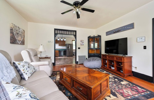 Come enjoy this updated one of a kind historical Sacandaga lake house! This spacious 3 bedroom home is perfect for a family getaway. Sit on the screened porch while enjoying your morning coffee. Across the street from our home there's a 270' private beach for you to enjoy the lake. In the evening sit around the bonfire, toast marshmallows and breathe in the crisp Adirondack nighttime air! Winter activities in the area include skiing, ice fishing and miles upon miles of snowmobiling trails.