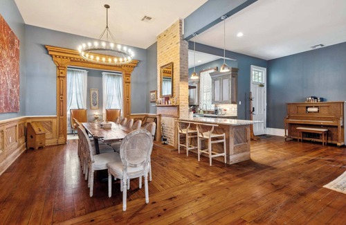 This house has been restored to highlight natural pine floors, intricate cypress wood accents and exposed brick fireplaces throughout. The 5br/6ba spans over 3,400 square feet and boasts an open floor plan that allows your group to hang out together while still having plenty of space for privacy in the sleeping areas. The backyard and pool area are a dream - lush tropicals and huge swimming pool built, you won't want to leave! This home is perfectly tucked away on a residential street yet accessible to all the city has to offer. This location is ideal for friends and family alike.