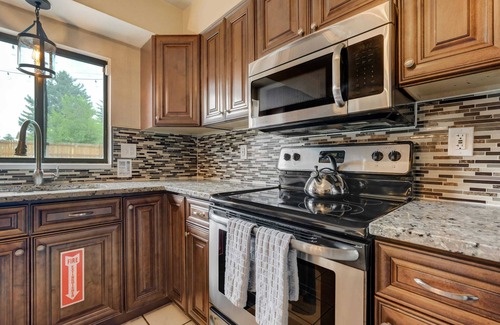Welcome to your perfect getaway in Colorado Springs! Our spacious three-bedroom, two-bathroom home offers everything you need for a comfortable and memorable stay. The master bedroom features a comfy king bed, closet, and bedside lamps. The second bedroom offers a queen bed, closet, and bedside lamps, while the third bedroom is perfect for kids or friends with two twin beds, a closet, and bedside lamps. Cook up a storm in the fully equipped kitchen, complete with all the cookware essentials.