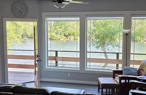 Recently built & spacious: river views from every room. Hosts live at B&B across street, as seen on VidaViewResort website. Fully stocked kitchen, laundry room, jetted tub, firepit, hot tub, Traeger grill; lush landscaping; blackout curtains; tall fences; electric driveway gate; security cameras; secluded feel with no other houses in sight; pet friendly. Only private & secure riverfront property with exclusive 750' of river access. Fish or launch your boat from our beach!