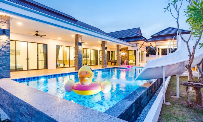 Private and Cozy Pool Villa in Hua Hin. 6 bedroom in 880 sq.m. area. Golf course and beach not too far.