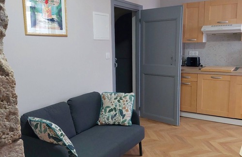 Vieux Chateau Le Casteil is a 15th century castle fort in the sunny thermal spa town of Molitg Les Bains in the Pyrenees Orientales just 45 minutes from Perpignan. Our accommodation consists of fully furnished studios and apartments for short or longer term stays. This sunny 1 bedroom flat features a fully fitted kitchen, sitting area with television and dining table and a big, bright bedroom with a double bed or two twins and a bathroom with shower. We provide free WiFi for our guests. Molitg known for its thermal waters offers beauty treatments, massages and health cures 1km down the road at the thermal baths. Molitg is at the start of numerous hike and walks and canyoning can be done in the warmer months. A VTT park and bike hire is just 4km up the road and for cycling enthusiasts the Tour de France climb the Col de Jau is just behind the castle. We have many UNESCO and tourists sites near by. We are a classed 3 star accommodation.