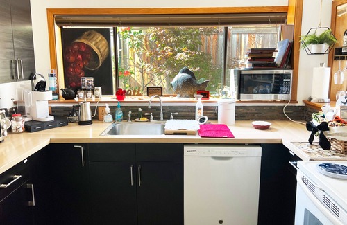 Privacy and the perfect view, stunning sunsets, ocean waves, and majestic mountain ranges are all your companion at Alki cottage. The cottage is on the bottom floor, expect city noise and some people noise from floor above. Enjoy the view from inside our spacious accommodations or relax on the deck in the hottub with a glass of wine. Alki beach and Schmitz park are all an easy 5 min stroll away. Want to explore Pike Place market, the space Needle or Aquarium it’s all a 10 minute ferry ride.