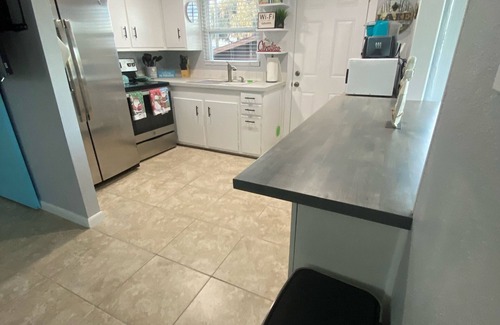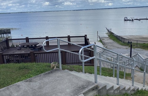 Steps away from Lake Weir. Private community beach. Restaurant next door with full bar and yummy food. Live music on some nights. Plenty of parking to bring your water toys and park a boat trailer. If you don’t have any or don’t want to haul it, rentals available next door: info in the pictures. Lots of shopping and eats in the Villages only 5 mins away. Only 1 hour from Disney World. Bring your fur baby but make sure they are leashed. Snow birds also welcome. Smart TV with streaming capabilities- YouTube TV subscription on all 3 TV’s.
