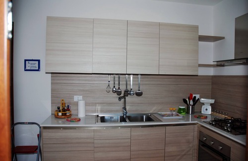 - ground floor with bedroom with double bed (air-conditioned) and wardrobe, bathroom with shower and bidet, living room with kitchenette (with fridge, freezer, stove, electric oven, electric grill, dishwasher, pots and pans) and sofa, large veranda. where it is possible to eat, with a splendid view of the gulf;