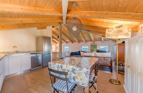 The attic is newly built and consists of a large open space which has the living room (with sofa bed), dining table and open kitchen. The master bathroom and bedroom complete this welcoming home.
