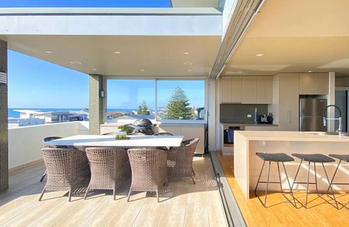 Between Beach & Lake. Perched high above the dunes provides expansive views over Nth Entrance Beach, Tuggerah Lake & Wyrrabalong National Park, all from a secluded rooftop oasis. 80m to the beach. 4min drive to the main shops. Surf Club, Patrolled beach in short walking distance. King Bedroom suite + 2 large bedrooms, 3 Lounge rooms, 2 Kitchens, Double car garage, with table tennis & air-hokey tables. Hot Tub, Outdoor hot water shower & more. 2 min drive to award winning Magenta Shores Golf course
