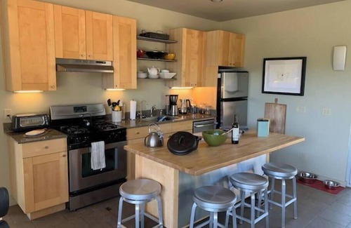 Kitchen: Cooking enthusiasts will enjoy a fully-equipped kitchen includes gas stove, large cutting board island, variety of pots/pans/baking equipment, microwave, dishwasher, Capresso coffee grinder/pot, Nespresso coffee, tea kettle, long-bread toaster, Belgian waffle maker, rice cooker, wok, hand mixer, Cuisinart Blender and a water filtration system. Locally sourced, organic produce, seafood and meats are abundantly available year-round via farmers markets, the Ukiah Co-op and individual seafood mongers and butchers.
