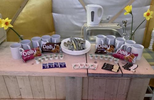 Vigo Retreat Yurt offers accommodations in Wrotham, 11 miles from Rochester Castle and 17 miles from Chatham Train Station. With free private parking, the property is 6.9 miles from Brands Hatch and 7 miles from Ightham Mote. Leeds Castle is 17 miles from the luxury tent and Hever Castle is 18 miles away. Towels and bed linen are available in the luxury tent. The property has an outdoor dining area. Guests can relax in the garden at the property. Bluewater is 17 miles from the luxury tent, while Historic Chatham Dockyard is 17 miles from the property. London City Airport is 30 miles away.