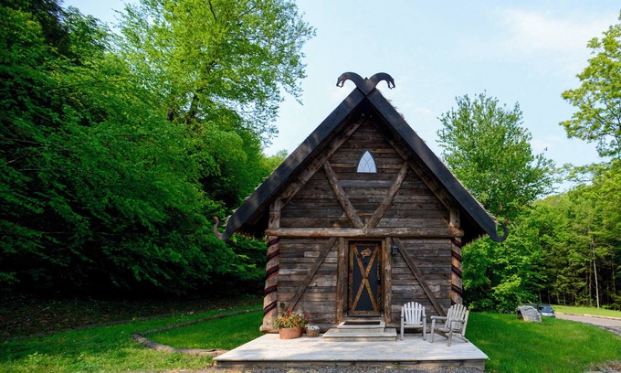 Go back in time while visiting the Viking Village. Stay in the cabin that brings you back to the time of Vikings. Each 650-square-foot cabin is encased in sustainably harvested wood and comfortably furnished with area rugs and polished wood floors. The downstairs queen-sized bedroom, kitchenette with stove and refrigerator, seating area with a gas fireplace, and an upstairs loft with two twin beds provide you with a restful retreat after a day of exploring.