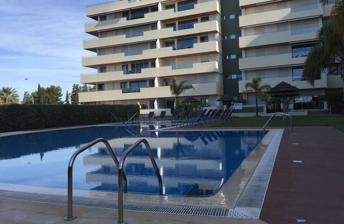 Does the Vilamoura apartment have a swimming pool?