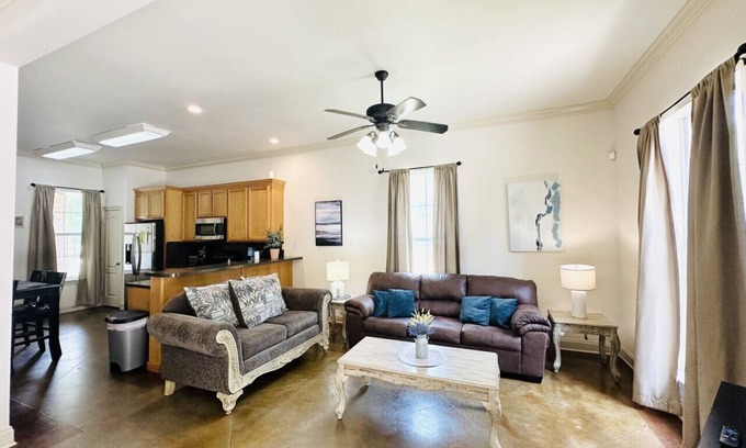 Great place to unwind and relax. Spacious and private 2 bed room, 2 bath apartment. quiet country setting with New Orleans style Décor. 10 ft cealings and open floor plan.