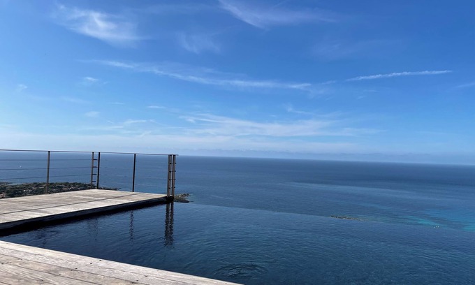 On the heights 5 minutes from the beach, it offers a heated pool, overflow that will offer you a fullness and a change of scenery with its 180 ° beach view.