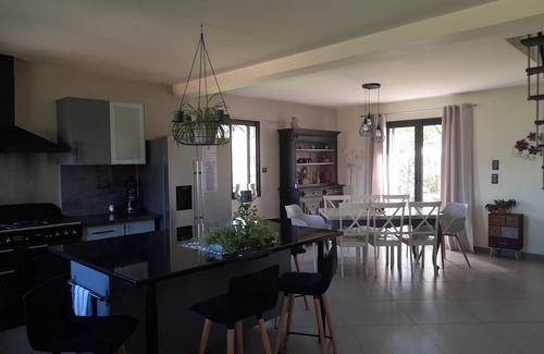 Rent new detached house of 170m2 located in a park of 2 hectares in a quiet and at the crossroads of all the major tourist sites. it consists of a large living room and a dining room open to the kitchen, 4 bedrooms, one of 35 m2 dedicated to children and adolescents with large screen tv game console, board games. 2 bathrooms. 2 separate toilets. the house enjoys high-end equipment with large stove dishwasher, microwave, senseo, washing machine, dryer, iron and ironing board. A large connected ambilight screen as well as a home theater and a bluray player are available in the living room. The exteriors are equipped with rope rope swing, a swimming pool with a breathtaking view of the Dordogne valley. the river is 5 minutes by car. The villa is located in a dead end which is perfect for the safety of children.
