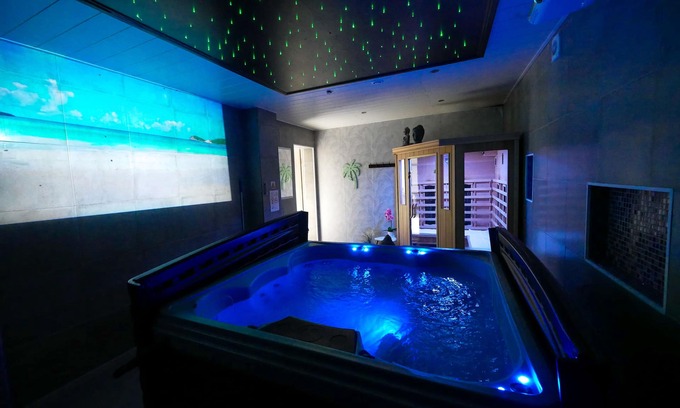 • A totally private SPA area accessible 24 hours a day, with a 5-seater Jacuzzi heated to 38 °, infrared sauna for 5 people and video projector with Netflix (package of 50 € for the entire stay),