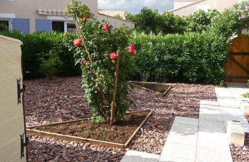 Housing in residence, very quiet located 500 m from the village center and 3 km from the sea, accessible by road and bike path (2 bicycles available (Man and Woman), private garden with trees.