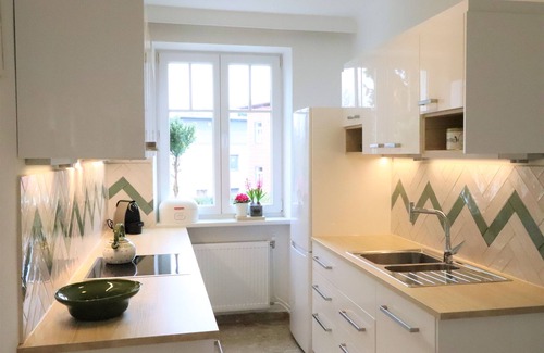 The large salon with Viennese flair invites families, friends or business travelers to relax, enjoy and work. Three bedrooms, two bathrooms, a fully equipped kitchen and a garden offer quality living.