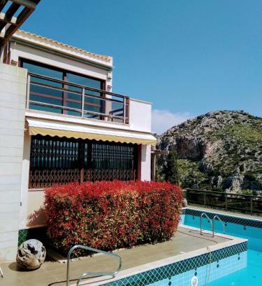Providing a garden, Villa 47 features accommodations in Keratea. This property offers access to a balcony, free private parking, and free Wifi. Mountain views are a highlight at the villa's pool. Featuring a terrace and sea views, the spacious villa includes 2 bedrooms, 2 living rooms, satellite flat-screen TV, an equipped kitchen, and 2 bathrooms with a walk-in shower. A private entrance leads guests into the villa, where they can enjoy some wine or champagne and fruit. There's also a seating area and a fireplace. Lavrion Technological and Cultural Park is 7.3 miles from Villa 47, while Temple of Poseidon is 16 miles from the property. Eleftherios Venizelos Airport is 14 miles away.