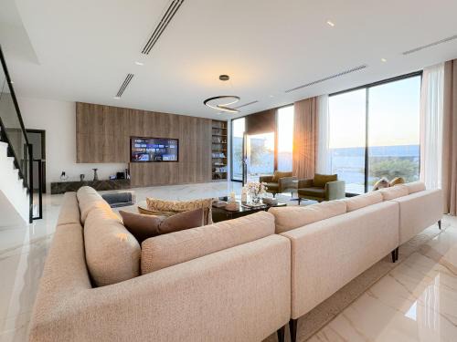 Villa 72 RAK is located in Ras al Khaimah, just 8.4 miles from Al Manar Mall and 11 miles from Tower Links Golf Club. This beachfront property offers access to a balcony, free private parking, and free Wifi. Jebel Jais Mountain is 29 miles from the vacation home and Ras Al Khaimah Free Trade Zone is 7.6 miles away. Featuring a terrace and garden views, the spacious vacation home includes 4 bedrooms, a living room, flat-screen TV, an equipped kitchen, and 5 bathrooms with a bidet and a bath. Towels and bed linen are available in the vacation home. For added privacy, the accommodation features a private entrance. The vacation home also features an infinity pool and a fitness center for guests to relax in. A children's playground is also available at Villa 72 RAK, while guests can also relax in the garden. Al Hamra Mall is 23 miles from the accommodation, while Al Hamra Golf Club is 23 miles from the property. Ras Al Khaimah International Airport is 23 miles away.