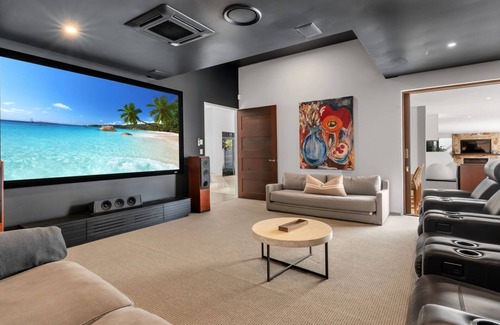 Every corner of this villa is designed with indulgence in mind. Host unforgettable gatherings in the sprawling outdoor entertainment area, complete with a poolside TV, fireplace, separate bar with on-tap beer setup, gourmet pizza oven and your own private pool. The chef’s kitchen, with its central layout and state-of-the-art appliances, is ideal for preparing lavish meals to enjoy poolside, while the outdoor bar area invites you to unwind with cocktails by the water. Indoors, enjoy a private cinema experience in the media room with six plush recliners or rejuvenate in the private gym, featuring its own bathroom and steam room for a true spa experience.