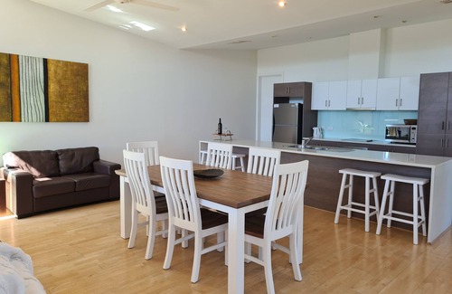 The Villa provides a high standard of living, has reverse cycle air conditioning, spacious living area and well equipped kitchen facilities. Make use of the coffee machine and have your cuppa on the upper or lower decks whilst taking in the water features and birdlife on the lagoon.