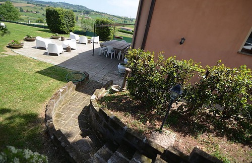 It is a spacious home in the hills of Rimini, surrounded by a large garden with stunning views of the sea and valley. Here you can enjoy the peace and nature. There is an above ground swimming pool with garden furniture and a barbeque.