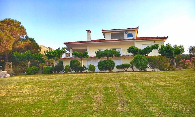 Featuring a bar, Villa Aegean offers accommodations in Mourteri. This beachfront property offers access to a balcony, free private parking, and free Wifi. The property offers free use of bicycles and features a garden and picnic area. Offering a terrace and sea views, the spacious villa includes 5 bedrooms, a living room, satellite flat-screen TV, an equipped kitchen, and 4 bathrooms with a bidet and a bath. A private entrance leads guests into the villa, where they can enjoy some wine or champagne and fruit. The property has an outdoor dining area. There is a snack bar, and a grocery delivery service is also available. Guests at the villa will be able to enjoy activities in and around Mourteri, like hiking. Church of Agios Charalabos Lefkon is 5.9 miles from Villa Aegean, while Kymis Port is 12 miles from the property. Skyros Island National Airport is 55 miles away.