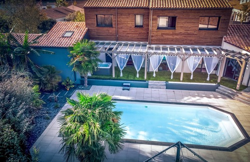 Le jardin paysagé est à votre entière disposition. Vous pourrez y profiter de la piscine chauffée 10 x 5 (sécurisée par un volet électrique), siroter un cocktail allongé dans les canapés extérieurs sous notre pergola ou vous dépenser en jouant au ping-pong ou aux fléchettes. Nous mettons également à disposition une plancha électrique pour vos grillades à déguster tranquillement à l'ombre de la terrasse extérieure.