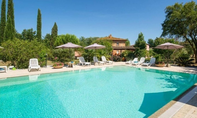 Marvelous villa with pool, tennis court and soccer field, located in the Tuscan countryside half an hour from Pisa and Livorno. It can sleep up to 12 people, has 6 bedrooms and 5 bathrooms.