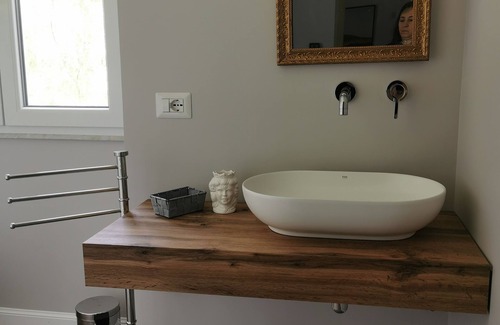 A comfortable and spacious suite, where peace and silence reign. The suite is equipped with high-quality linens, a mini-fridge, and a hairdryer. It consists of a living room with a double sofa bed, a bathroom, a double bedroom, and a second bathroom. You will be welcomed into a familiar and welcoming environment, where you can enjoy a rich breakfast included in the price, featuring local products, and use the common spaces. You can also appreciate the panoramic view from the terrace overlooking the valleys and the sea. Located 10 minutes from the Valley of the Temples and 15 minutes from the crystal-clear sea, the village of Racalmuto is rich in history and offers local eateries with regional products. It enjoys a privileged position for unforgettable excursions away from the typical tourist routes. We can organize e-bike tours, including in the Sicilian capital.
