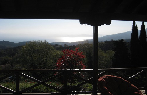 Villa Alexandra is located just outside Neohori village in South Pelion on the "ring road". The villa is exactly in the center of Pelion and it gives you access to both south and north Pelion and as well to both sees Aegean and Pagasitikos gulf. It is built in a 4500 square meter lot offering a total of 310 square meters of living space on two floors plus a basement. On the ground floor you will find a big living room with fireplace and an open kitchen-dining room, a small bedroom with two beds and a bathroom with shower. On the first floor you will find the master bedroom with a king size double bed and two more bedrooms with two beds each one, one big bathroom with shower and a smaller one also with shower. All beds are build. (There are generally 6 beds,1 double bed and 2 extendable beds which you can put wherever you want). Large verandas offer a panoramic view of the Pagasitikos gulf and the surrounding mountains. A play room with a table tenis table is organised in the basement. There is a two car covered garage in the property and various fruit trees around. There is also an outdoor BBQ as well as an outdoor shower.