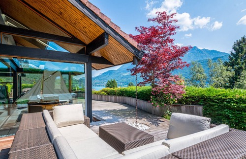 - a beautiful terrace with a view on the Annecy lake and the mountains,