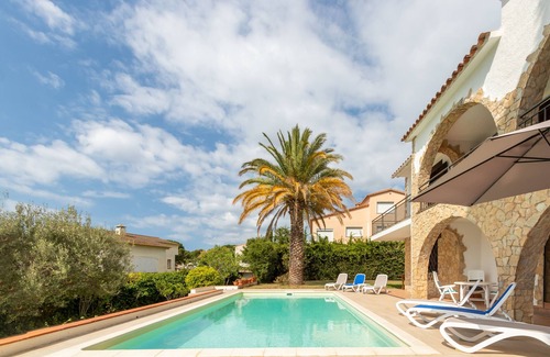 "Villa Amistad" with Mountain View, Private Pool & Wi-Fi is located in El Vilar d'Aro. "Villa Amistad" with Mountain View, Private Pool & Wi-Fi provides accommodation, featuring Balcony/Terrace, Bedding/Linens, Internet, among other amenities. This Villa features Balcony/Terrace, Bedding/Linens, Internet, to make your stay a comfortable one.