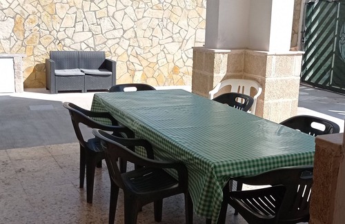 Villa ANGELA CHIARA is located in Porto Cesareo, SP 340 at the corner of Via 36, in the area of the most famous beaches of Porto Cesareo, such as Lido Bassa Marea, HOKIPA, Bacino Grande. Located just 5 minutes from the beach by foot (300 meters) from the Bassa Marea beach and the adjacent fine sandy beach, the villa is ideal for groups of friends and families with children and elderly people who want to reach the beach on foot, avoiding queues in car and parking problems. With independent access, on the GROUND FLOOR, house ANGELA CHIARA 1 P. T, is composed of a large fenced yard where it is also possible to keep two cars. Outside, there is a spacious covered veranda, equipped with tables, garden chairs and a barbecue. Inside the apartment located entirely on the ground floor, to spend moments of relaxation, we find a large living room composed of a wall equipped with flat screen TV, table, chairs and sofa. A large corridor separates the living area from the sleeping area, which consists of three bedrooms (for a total of eight beds), of which two are double rooms with an added single bed and a further room with two single beds that can be joined if necessary. The house consists of two complete bathrooms, one of which is brand new, in the bedroom, with a massage effect showerhead, another in the corridor. A comfortable outdoor shower is also available in the courtyard. The kitchen, equipped with pots, cutlery and crockery is equipped with two refrigerators. The house has excellent ventilation and is very cool as another completely independent apartment is built on the first floor. The apartment is equipped with alarm system, flat screen TV, washing machine, mosquito nets in the living room and in the bedrooms, barbecue, mobile fans in every room, and comfortable outdoor shower. The house is connected to the public water supply, it does not present problems related to cisterns. In 2019 the electrical system was completely redone. It is possible to rent towels and sheets at an additional cost.