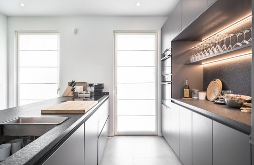 Villa Angelina which is always exclusively available only for the respective main tenant and his fellow guests, is located above the town of Lazise on the southeastern shore of Lake Garda. Surrounded by well-kept lawns, you can use a total of 20,000 m2 consisting of vineyards and olive groves to relax. A large parking lot also offers the possibility to park several cars safely. The 360 degree panoramic view of the mountains and the lake is almost unique on Lake Garda. The new villa (2022) with 5 bedrooms and 4 bathrooms, a very large roof terrace, the large pool and a corresponding outdoor area offers many opportunities to sunbathe, swim and never be in the way even with several people. Fully air-conditioned, this villa is extremely comfortable inside even on very hot days. A special place is the outside breakfast area overlooking the lake and well protected from wind and sun right by the modern kitchen. A jewel to look forward to.