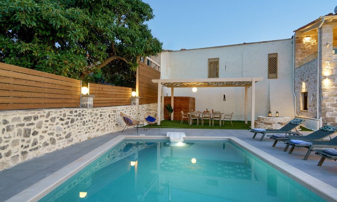 Discover Villa Angelo – a design-led stone retreat with a private pool, 4 en-suite bedrooms, and outdoor dining under the stars. Hidden in a peaceful village near Rethymno, this villa blends Cretan soul with modern comfort. Perfect for families or friends seeking slow, meaningful holidays in nature.