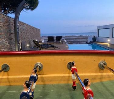 1.8 miles from Grande Plage in Angoulins-sur-Mer, Villa Angoulins front de mer provides accommodations with access to a hot tub. This beachfront property offers access to free Wifi and free private parking. Outdoor seating is also available at the villa. Providing a terrace with sea views, this villa also provides guests with a satellite flat-screen TV, a well-equipped kitchen with a dishwasher, an oven, and a microwave, as well as 3 bathrooms with a hot tub and bathrobes. There's also a seating area and a fireplace. Guests can relax in the garden at the property. La Rochelle Train Station is 5 miles from Villa Angoulins front de mer, while L'Espace Encan is 5.1 miles away. La Rochelle - Île de Ré Airport is 11 miles from the property.