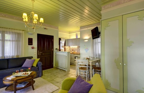 The resort is located just outside the charming settlement of Lefokastro, set in a vast and immaculately maintained garden. The property is situated on a slope above a stunning pebble/sand beach, providing an unobstructed and awe-inspiring view of the sea from all of the five well-appointed flats that are available to guests.