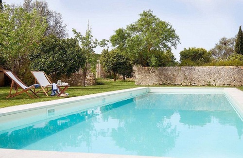 The garden is 1200 square meters (12900 square feet) large. It is partly shaded by characteristic olive trees and by perfumed fruit trees. The garden is equipped with armchairs, as well as with tables, chairs and sun umbrellas. From the garden you will enjoy a charming view of the greenery and of the swimming pool.