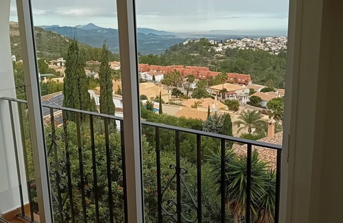 Owner maintained property so it will be thoroughly cleaned and disinfected between guests. Hand gel and antibacterial sprays provided for guest use. NEW! Key safes installed so that guests can choose a contactless check in. Co-ordinated garden furniture, and hot tub. NEW! Decorated throughout, inside and out, for 2024 season. NEW! hot tub robes for adults. Comfy lounge area, two, 2 seater sofas, TV, Ercol tables. Fully fitted and equipped kitchen. Situated in El Rafol D'Almunia, Costa Blanca, this 2-bedroom apartment is licenced to sleep 4 .The villa has a private pool hot tub gor guests. Gardens & terraces shared with us. Apartment has it's own pool terrace with panoramic views of mountains and the sea, the apartment is 40min from the main resort of Benidorm, & 30min from the city of Gandia. The closest sandy blue flag beach is only 10-15 min away at Las Marines /Deveses. This makes the apartment an excellent starting point for all your holiday needs, as well as a comfortable and relaxing retreat. It is also within 20min of at least 3 international golf courses. The house is built into the mountain itself and so keeps beautifully cool in summer, and nicely warm in winter. Children must be supervised at all times by a responsible adult when in the area outside of the apartment (the mountainside, the steps, pool, etc). Welcome pack for all visitors with some treats. We have 3 well behaved, friendly & vaccinated etc, free range cats, but they are not allowed in apartment!